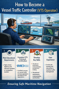 Learn how to become a Vessel Traffic Controller (VTS Operator), required training and certification, and the key differences between VTS Operators and VTS Supervisors.