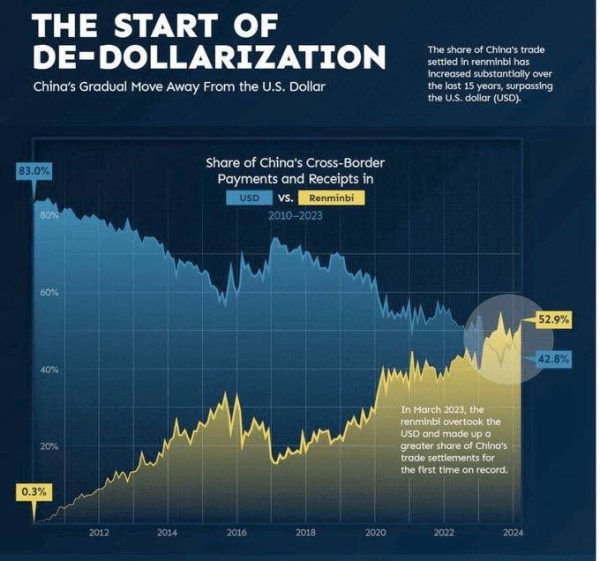 The Renminbi has officially overtaken the US Dollar in China’s trade settlements. Explore the data and implications of this historic shift in global finance and the start of de-dollarisation. A … Continue reading A New Era of Dedollarisation: The Chinese Currency Renminbi(¥) Overtakes the US Dollar($) in China’s Trade Globally